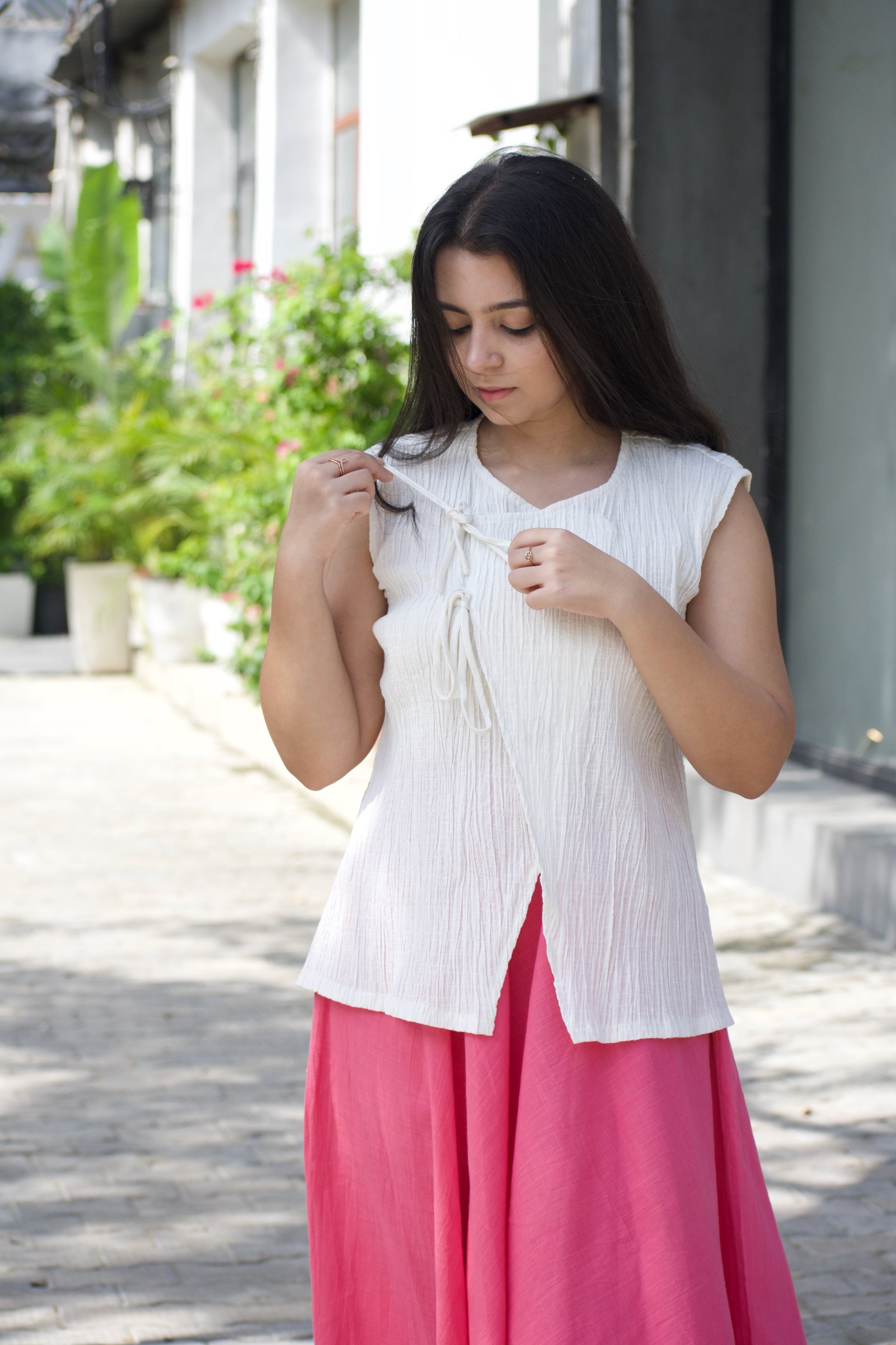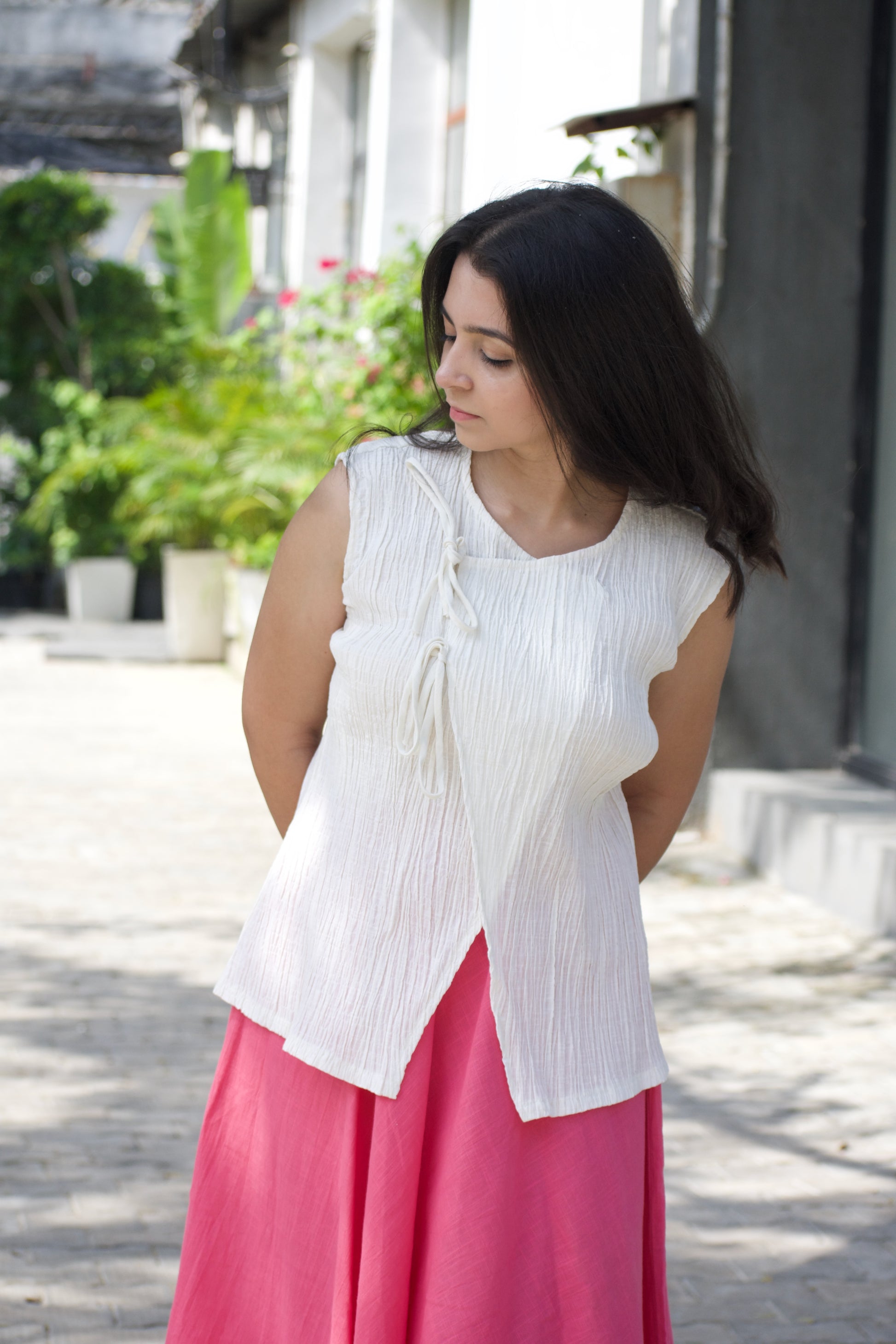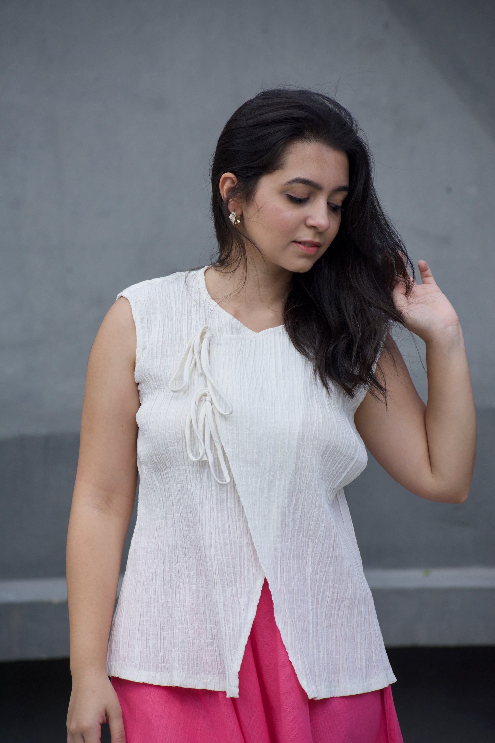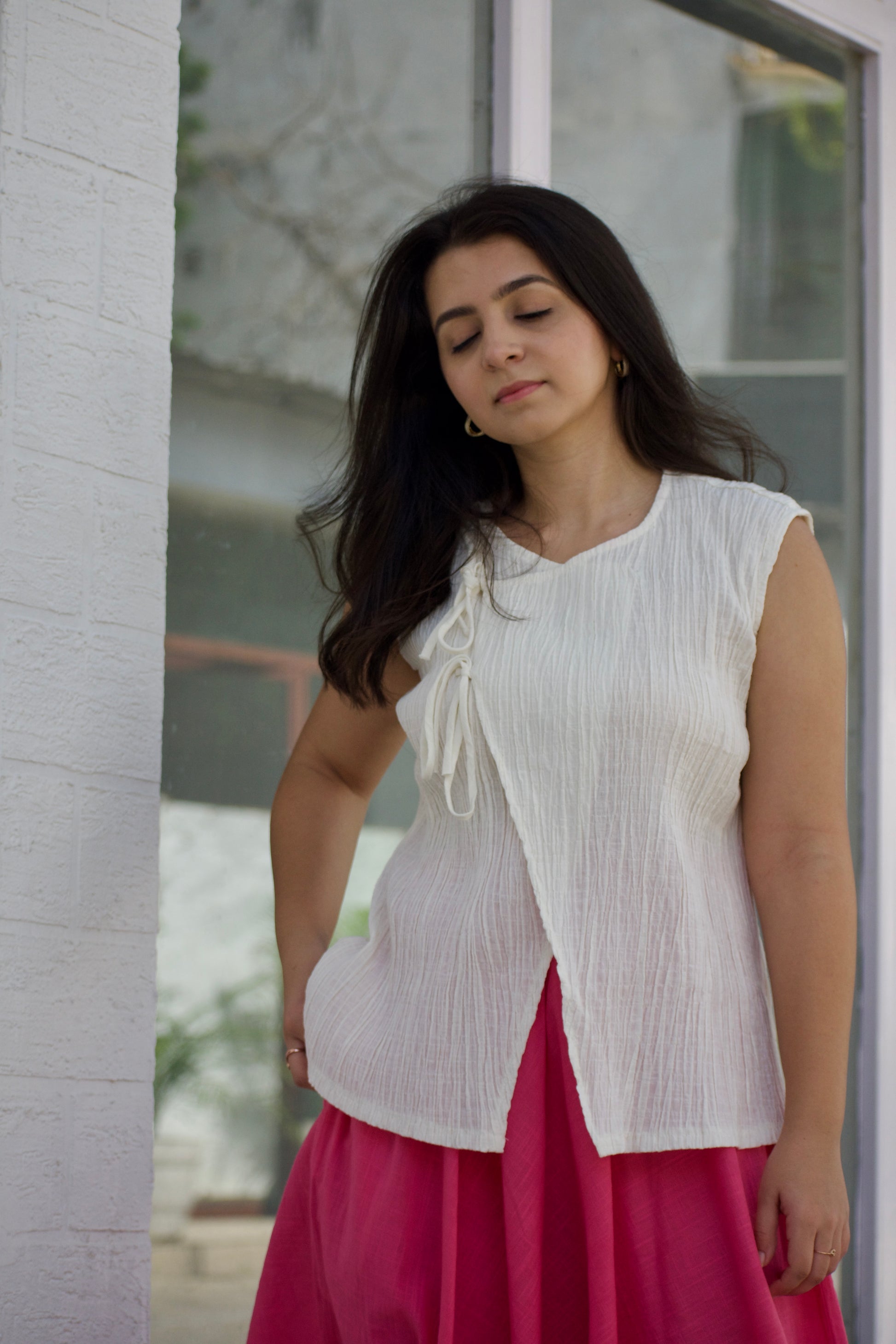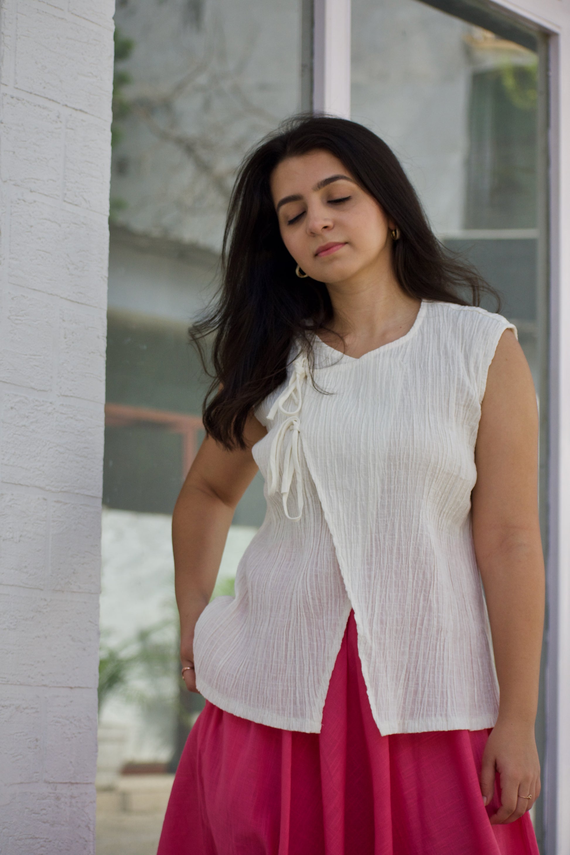 For the days that feel slow and sunlit. The Tokyo Top is cut in a light crushed cotton, designed to wrap around you with ease. With a tie-front silhouette, it’s meant for hours spent lingering - at home, or on evening walks through the city. It’s that all purpose white piece you’ll keep reaching for - for day cafés, travel days, or the long stretch between summer and rain.