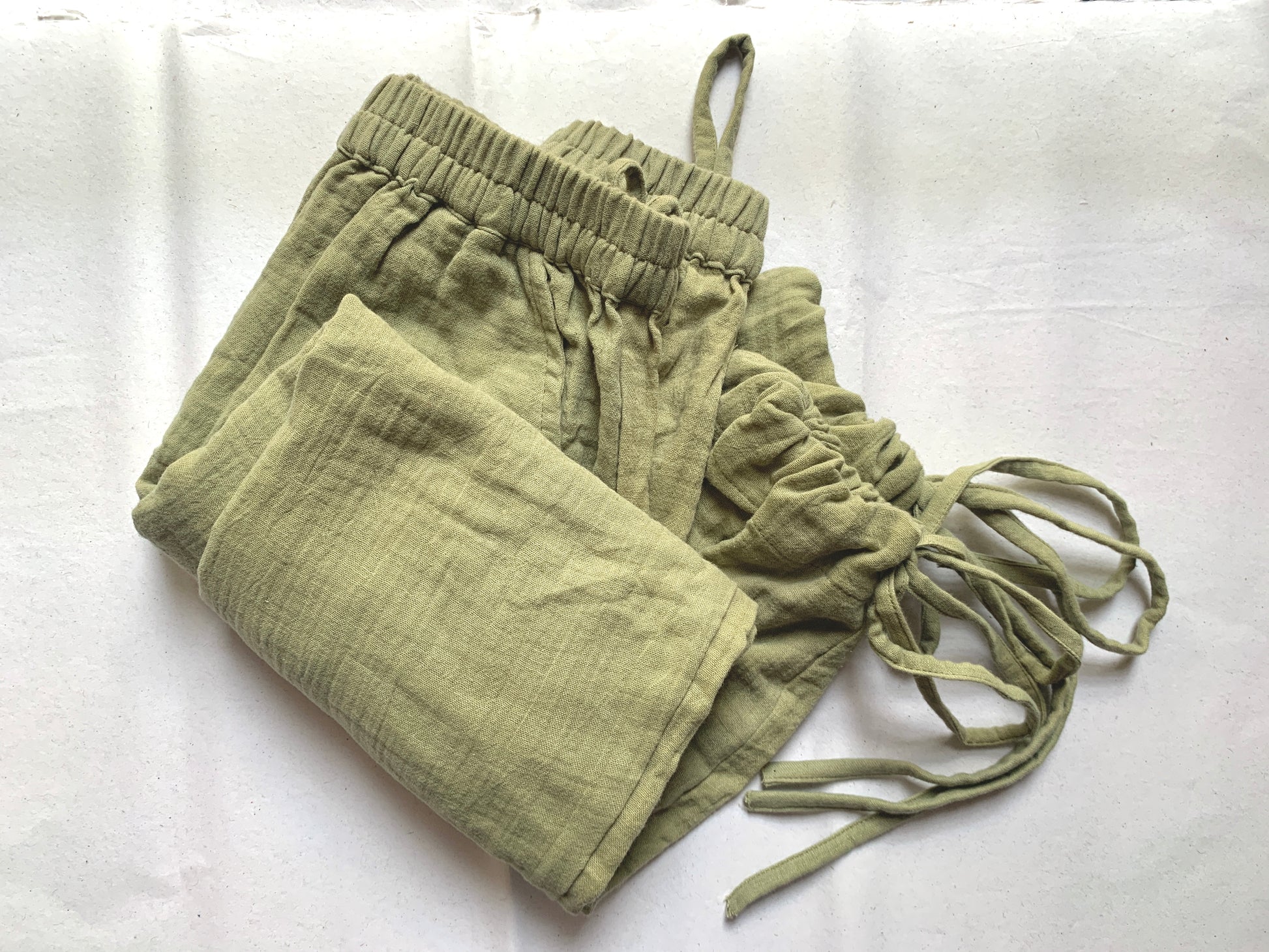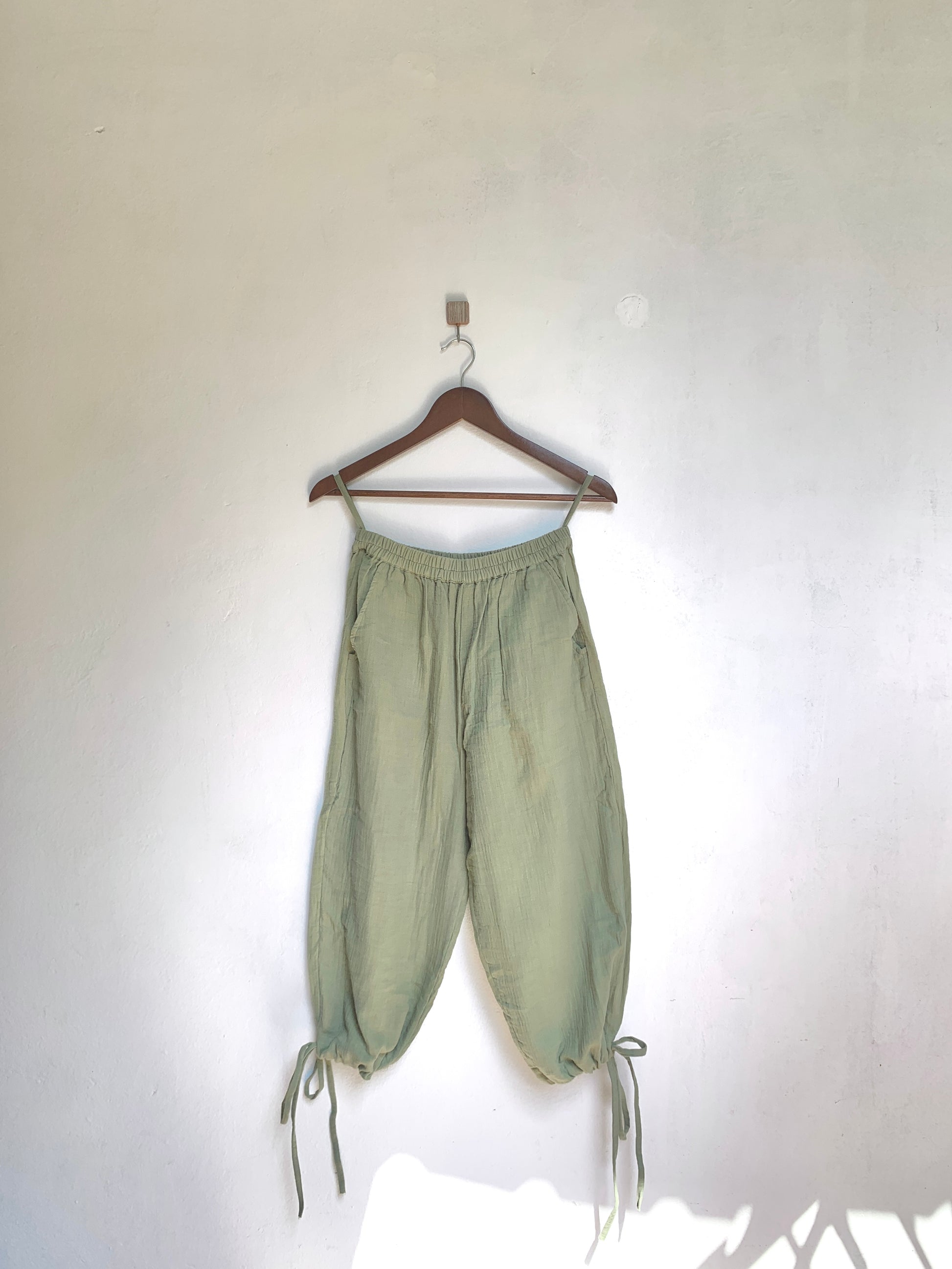 Designed for the movement. For your supreme comfort while you ground into your Yoga practice. Our Yoga Pants come with an elastic at bottom of the leg with adjustable ties so that the fabric doesn't come in the way, in anyway. Made with our signature soft double cotton gauze
